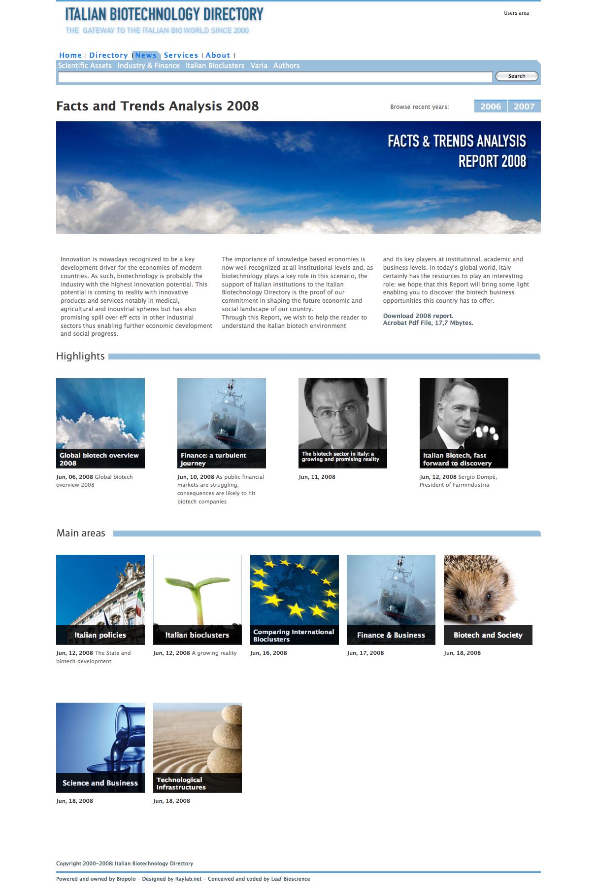 ITALIAN BIOTECHNOLOGY DIRECTORY - F&TA 2008 edition 2 Date: 09/28/2008